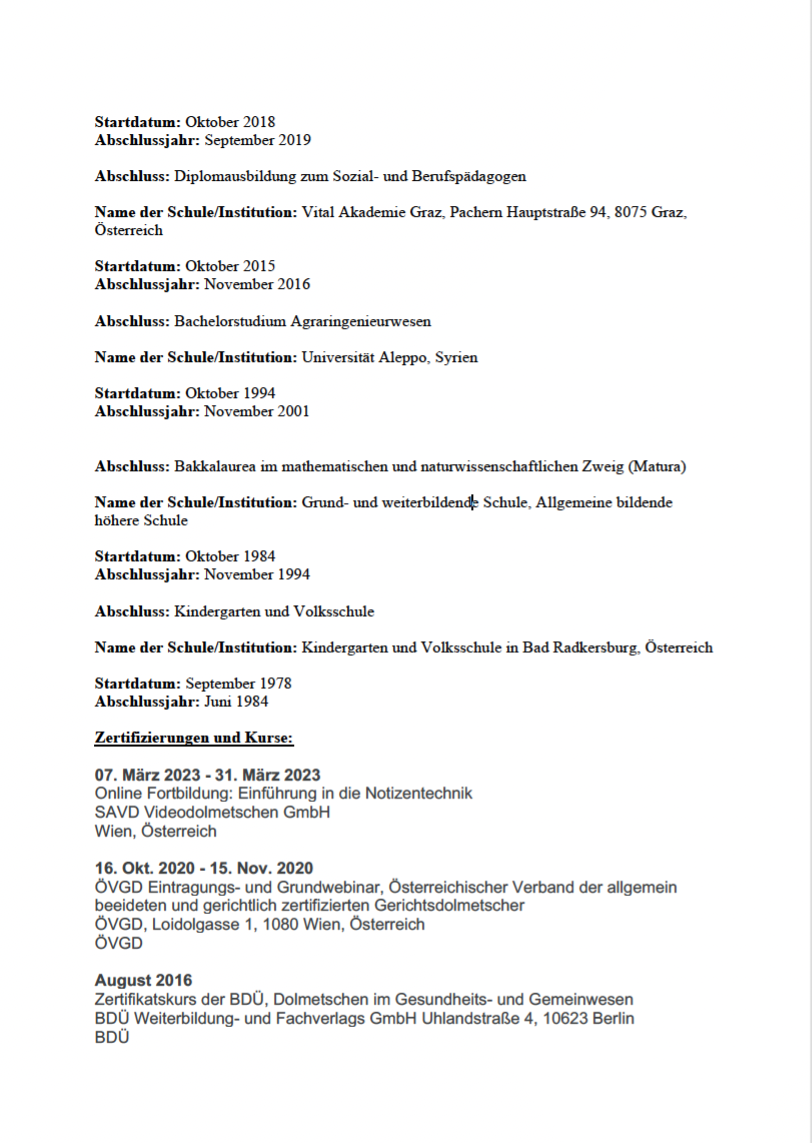 Lebenslauf in Deutsch - Lebenslauf in Englisch - Lebenslauf in Arabisch